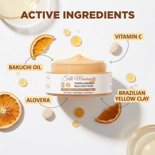 SILK PRIMER with MOUSSE TINTED SUNSREEN SPF 60 PA+++ Blue Light Filter (Lab Tested)