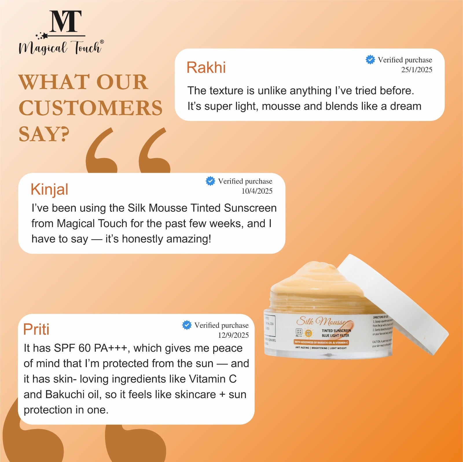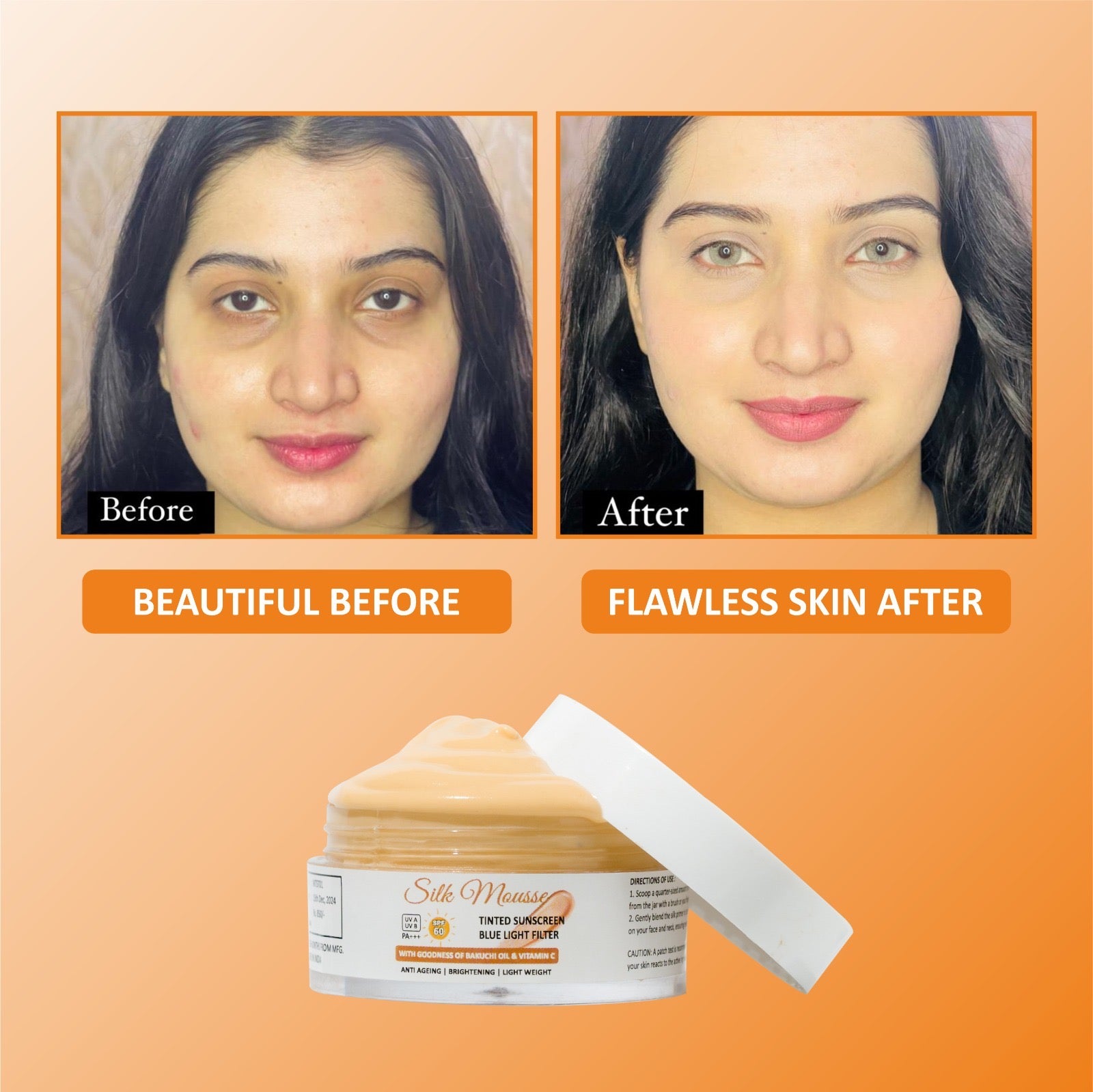 SILK PRIMER with MOUSSE TINTED SUNSREEN SPF 60 PA+++ Blue Light Filter (Lab Tested)